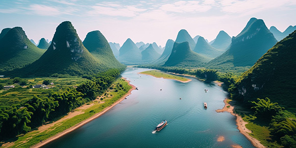 途徑如詩如畫【最美畫道-陽朔十里畫廊】感知陽朔醉美山水田園風光,與風對話,與山為鄰,暢游在美景之中;以更舒適的方感知陽朔,秀麗的景色像一幅幅畫映入眼簾。