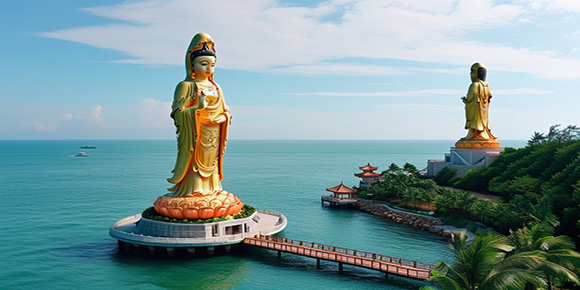 【南山佛教文化苑】國家5A級景區,我國有名的宗教與福壽文化景區,在這里既能欣賞山海自然美景,還可拜訪眾多佛教名勝、參觀舉世聞名的“南山海上觀音”,獲得佛教文化帶來的心靈蕩滌,體味回歸自然本真的樂趣;領略佛教造像藝術的璀璨,南山文化旅游區內遍布氣勢恢宏的佛教建筑,108米高的南山海上觀音莊嚴壯觀,三十三觀音堂、南山寺內都不乏形態各異、精雕細琢的佛教圣像;祈福許愿、拜求平安我國傳揚千古的名句“福如東海,壽比南山”。