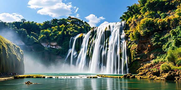 之后游覽亞洲最大 ,貴州必游景點【黃果樹瀑布】(不含黃果樹景區內扶梯單程 30 元/人 ,往返 50 元/人 ,屬不必須消費項目 , 自愿消費) ,游覽不少于 3H; 黃果樹大瀑布寬101米 ,高 77.8 米 ,是世界上唯一可以從上、下、前、后、左、右六個方位觀賞的瀑布 ,峭壁震顫,谷底轟雷,十里開外也能聽到它的咆哮,濺起的水霧可彌漫數百米以上。觀【犀牛潭】 ,感受瀑布之壯美 , 品大自然之奇妙。