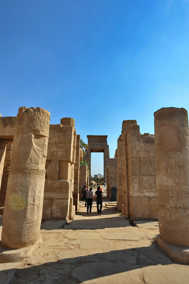 整個建筑群中,包括大小神殿20余座。院內(nèi)有高44米,寬131米的塔門。大柱廳寬102米,深53米,其中共有134根巨型石柱,氣勢宏偉,令人震撼。其中最大的12根高23米,周長15米,其上足可容納50個人站立。晚上有聲光表演,用五彩的燈光變幻映照著遺址,配有解說詞和音樂,向游客敘述古埃及人民的生活情景。阿蒙神廟位于盧克索鎮(zhèn)北4公里處,是卡爾納克神廟的主體部分,這里供奉的是底比斯主神——太陽神阿蒙,始建于三千多年前的十七王朝,在此后的一千三百多年不斷增修擴(kuò)建,共有十座巍峨的門樓、三座雄偉的大殿。
