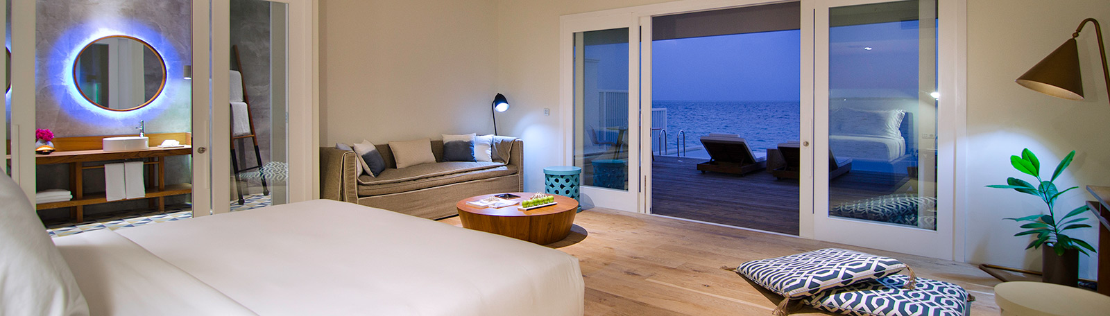 無論您是家庭出游或與朋友們享受絕美的假期,具有現(xiàn)代風(fēng)格的雙臥室海洋水上屋都是理想之選。雙臥室海洋水上屋是絕佳的位置,可俯瞰醉人的礁湖和青綠色的印度洋美景,讓您完全沉醉于馬爾代夫的寧靜。其設(shè)計富有現(xiàn)代感且時髦,內(nèi)設(shè)空調(diào),兩間臥室均配有獨立的浴室,私人的露臺可讓您呼吸著清新的空氣享用美食,還有一個私密的淡水泳池,可以直接通達大海。