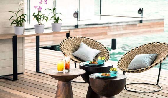 美食特色:各式飲料。餐廳介紹:位于主泳池旁,The White Bar一整天 都可以提供清爽的雞尾酒和清淡的食物。在戶外,板凳席,躺椅椅,客人可以躺在棕櫚樹蔭下沐浴陽光下,同時享受瀉湖美景。在日落,酒吧會舉行大型的雞尾酒晚會。