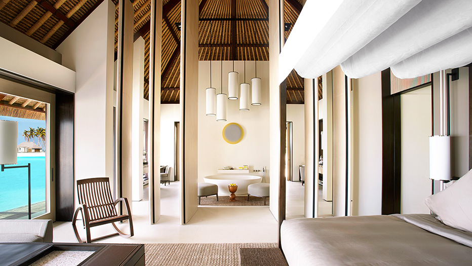 水別墅是夫妻享受甜蜜生活的理想環境。木制浮橋通向別墅的入口。別墅有一個客廳和一個臥室有步入式衣柜和浴室,可以直接欣賞到瀉湖和印度洋美景。配有2.5米長私人游泳池,室外休閑區配有泳池露臺,沙發床和淋浴,每個別墅都緊挨著美麗的水上甲板。