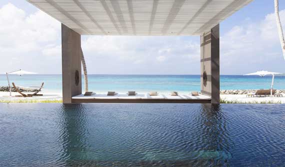 是目前馬代最奢華的酒店,由4個島嶼構成,房間面積240平以上的房間,每一棟別墅配有超大私人游泳池,各項設施頂級:如專屬訂制的奢華水上飛機。