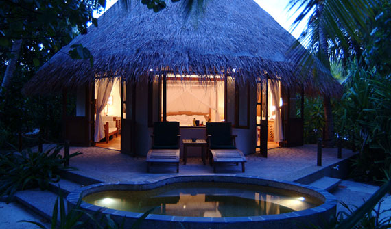別墅位于杜妮可魯島海灘北端,別墅輔以傳統(tǒng)的茅草屋頂花園和露天浴室反映真實的馬爾代夫的觸動,靠近海洋的別墅可以直接看到藍綠色海洋和天空,房間擁有特大號大床和露天浴室私人陽臺。