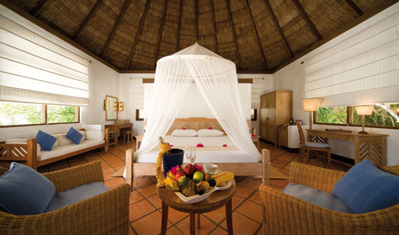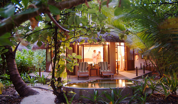 日落沙灘別墅位于蒼翠天然的自然植被之中,與世隔絕,提供浪漫的私人體驗。所有別墅都擁有開放式浴室,你能夠在沐浴的同時透過棕櫚樹葉行賞日出,或者在星光下安享寧靜。