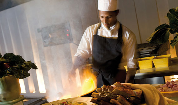 山茱萸燒烤餐廳對一些口味較挑剔的客人而言,就是美食天堂。餐廳有田園一般的就餐環(huán)境,隱匿于郁郁蔥蔥的自然植物中,亦可觀賞印度洋海景。露天餐廳,餐桌在海灘上,輕松愜意地享用海鮮佳肴。餐廳的服務很人性化,能夠依據(jù)客人的口味烹飪出不同的新鮮海鮮。客人們亦可親手在此享受燒烤的樂趣,把自己喜歡的食材烤得恰到好處。甚至,您還可品嘗到不少不錯的亞洲口味菜品。晚餐在這里聽海浪拂岸,同時享用燭光晚餐。