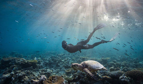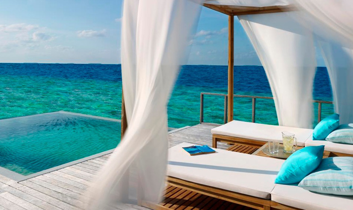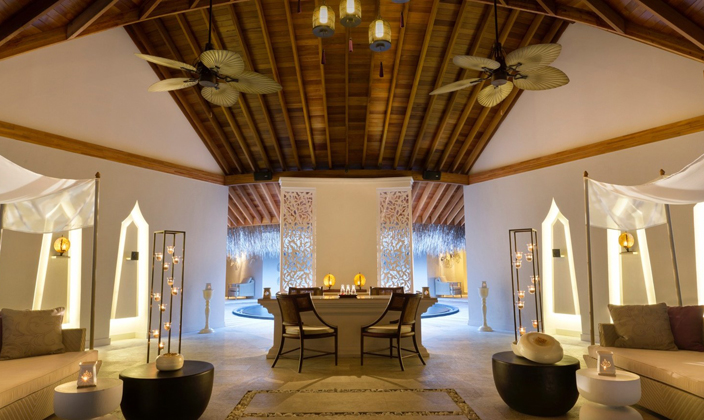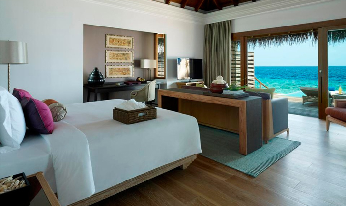 沿著木制小道一路向前,采用茅草屋頂的海洋亭躍然水上。在印度洋的映襯下,這一充滿熱帶風情的夢幻之地配備超大浴缸、室內和室外休息區,并直接通向富饒的珊瑚礁地帶。海洋亭裝飾奢華,洋溢出濃郁的泰式風情,透過玻璃門窗望去,美景盡收眼底。享受一次美好的泡沫浴或徜徉于如水晶般透徹的在私人泳池中,這是真正的水屋。