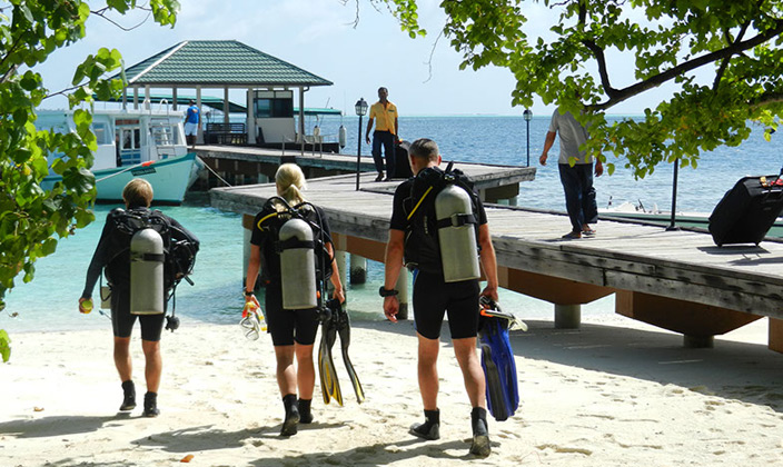 茵布杜鄉(xiāng)村度假村里有專業(yè)的潛水中心和周?chē)臐撍c(diǎn)(島嶼周?chē)鷵碛?0個(gè)深潛地點(diǎn)),因此在潛水環(huán)境方面茵布杜鄉(xiāng)村度假村具有很大的優(yōu)勢(shì),是潛水者的理想之地。島上的潛水中心設(shè)施完善,潛水課程也特別豐富。另外度假村每天會(huì)定時(shí)組織旅客去30多個(gè)潛水地點(diǎn)感受奇妙的水底世界。若您沒(méi)有帶專業(yè)的潛水裝備,可以去島上的潛水中心租借,這里也很適合想第一次下水體驗(yàn)深潛的游客,因此潛水這項(xiàng)運(yùn)動(dòng)在茵布杜島度假酒店相當(dāng)熱門(mén)。