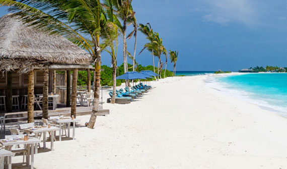 在豪華的熱帶花園特色的綠松石Finolhu瀉湖和太陽椅和花園寬敞的室外用餐露臺私人海灘,210平方米的摩爾風(fēng)的海灘別墅,配備了40英寸純平電視,私人葡萄酒和迷你酒吧。