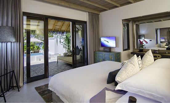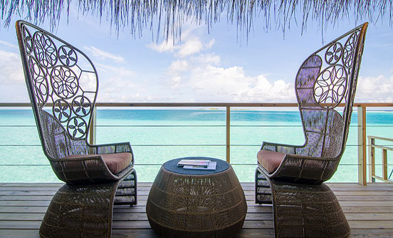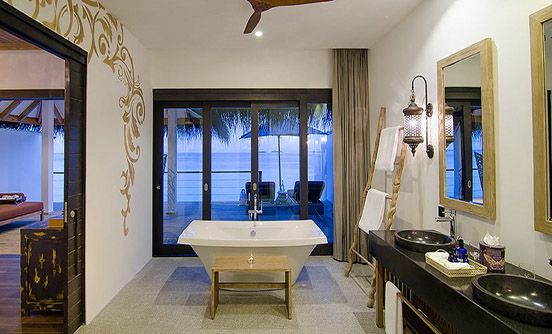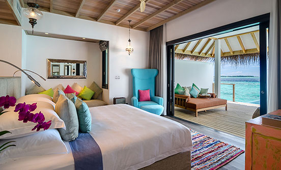 180sqm水上別墅的靈感來自法國里維埃拉的鮮艷色彩,可直接進入海洋,有個6m長的淡水游泳池以及設(shè)計獨特的家具和大型豪華的搖椅和一個私人陽臺室外的沙發(fā)床。 享受40英寸平板電視的私人葡萄酒及迷你酒吧、大型戶外陽臺配有躺椅和戶外淋浴,獨立衛(wèi)生間的海景浴缸和室內(nèi)淋浴而忽略了驚人的finolhu瀉湖和1.8公里長的沙灘。