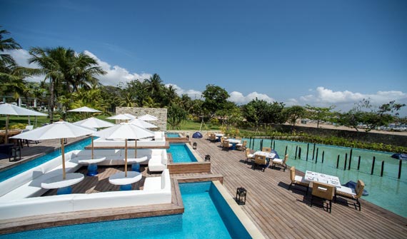 泳池吧是放松身心、享受靜謐一刻的理想之地。18:00后免費提供純美香檳一非空調區域可容納119人其中吧臺27個座位,休息區92個座位。