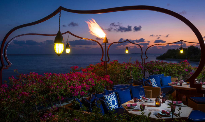 美食特色:意大利美食。餐廳介紹:在Blu 餐廳可以俯瞰 2 公里的廣闊礁湖,坐擁馬爾代夫最美麗的自然風光。無論是在餐廳亭樓,還是Blu 酒吧亭樓,都能觀賞到唯美、浪漫的落日余暉。該餐廳日間供應開胃菜、比薩和意大利面食,晚間供應精致的意大利美食。