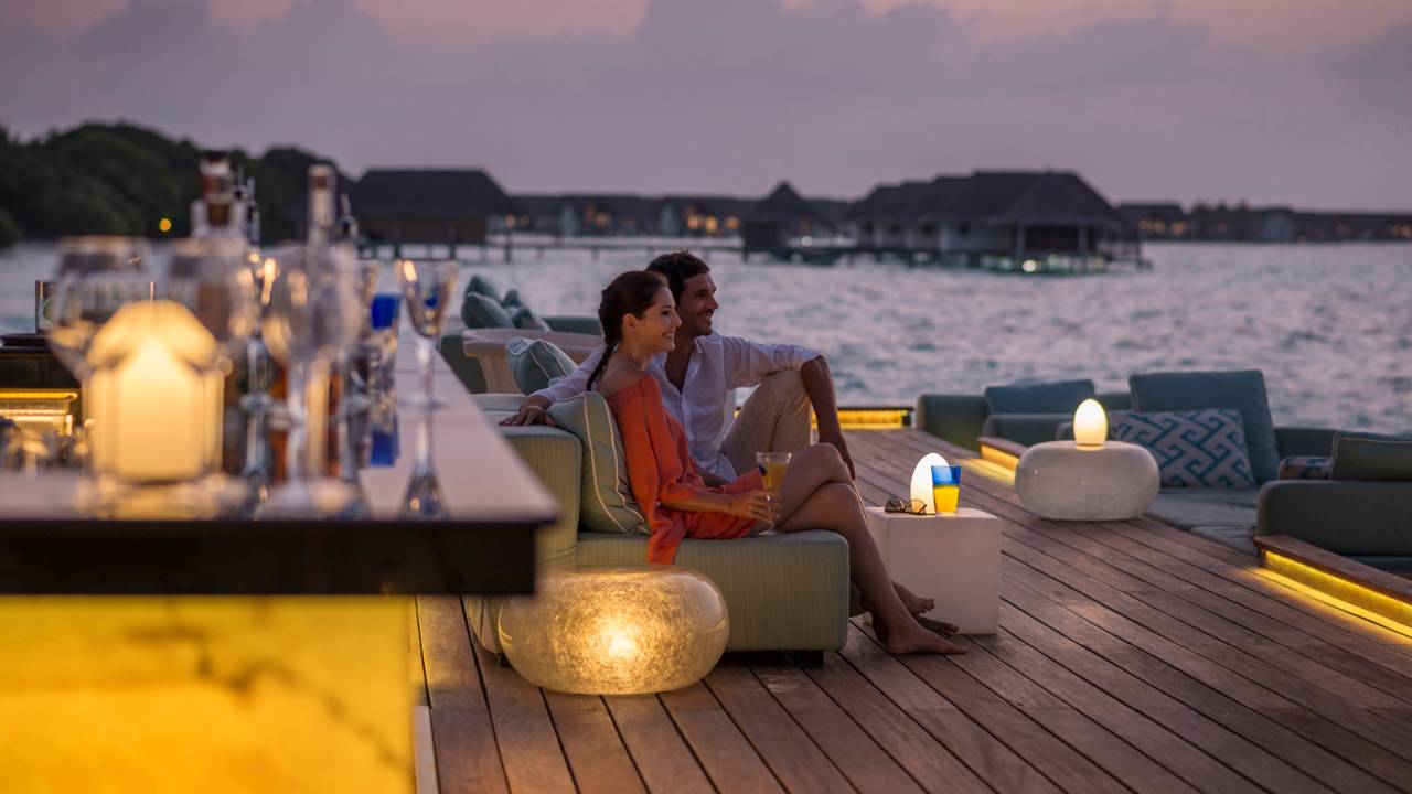 美食特色:雞尾酒、餐前小吃。餐廳介紹:沿著海岸悠閑漫步,駐足馬爾代夫最寧靜、舒適的露天平臺之一,Seabar 酒吧,這里有柔軟、舒適的座椅,您可以一邊欣賞腳下的檸檬鯊和珊瑚魚在碧藍色的海水中自在遨游,一邊品嘗特色冰鎮瑪格麗塔雞尾酒以及各式美味餐前小吃。