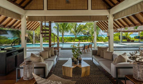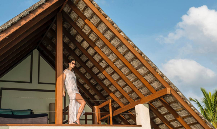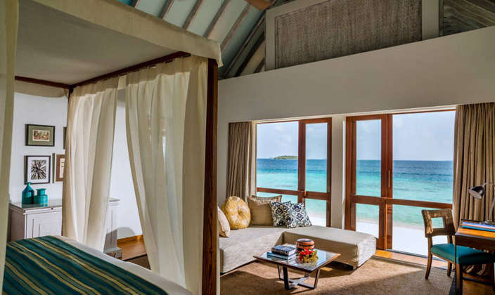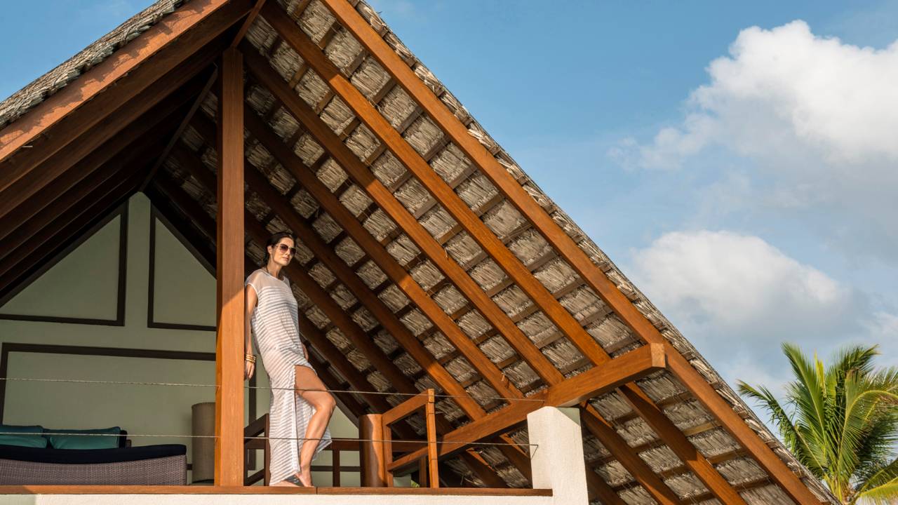 在海景小屋郁郁蔥蔥的熱帶花園中一覽礁湖美景,享受與大自然親密接觸的非凡樂趣。可以在露天棚屋(以茅草棚為頂的傳統小屋)內用餐和休息,或縱身泳池,感受清涼,或置身四周環繞的私密花園中享受日光浴。置身于別墅的私密氛圍中,無需擔心被打擾,也不用拉上窗簾,只需慵懶地躺在床上,便可觀賞迷人的天然海景。