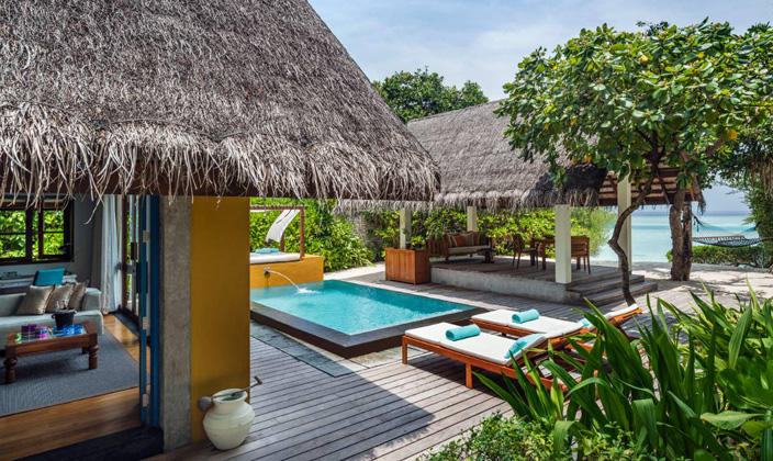 皇家沙灘別墅的亮點是這座20米長的泳池。泳池兩側設有沙發床、躺椅和私人海灘。別墅的私人淺水泳池上建有“浮島”餐廳,您可以在波光粼粼的水面享用美味。您可漫步于海灘上連綿的純白細沙、眺望湛藍海面的無垠美景,并在郁郁蔥蔥植物環繞中,享受難得的私人空間。