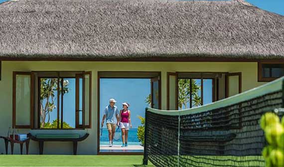 雙臥室水景朝陽套房采用傳統(tǒng)粉刷墻面和馬爾代夫茅草屋頂,室內則采用木地板、清爽色調和柚木家具精心裝點,給您自然原生態(tài)的愜意氛圍。露天遮陽平臺設有躺椅和餐桌,您可以在此一邊傾聽海浪的聲音,一邊讓自己徹底放松。