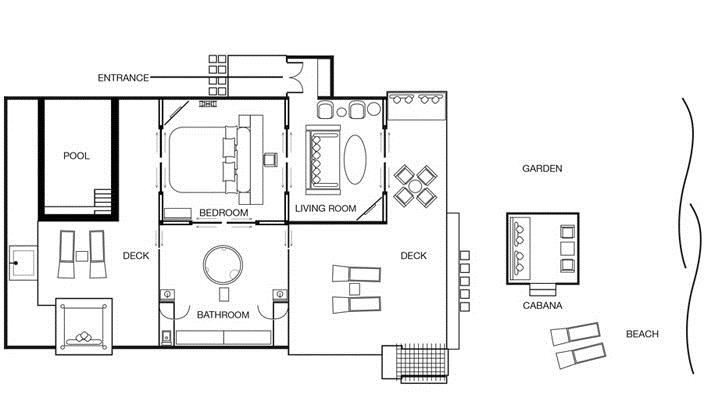 套房展示了優雅和獨特之傳統味道,時尚而成熟。樸素而又典雅的設計,這些棚屋將讓您觀賞到印度洋全景。它擁有兩間臥室、游泳池、桑拿和蒸氣浴室,極可意浴缸、私人餐飲區,寬敞的休閑室還有 40 寸液晶電視和私人大太陽床。
