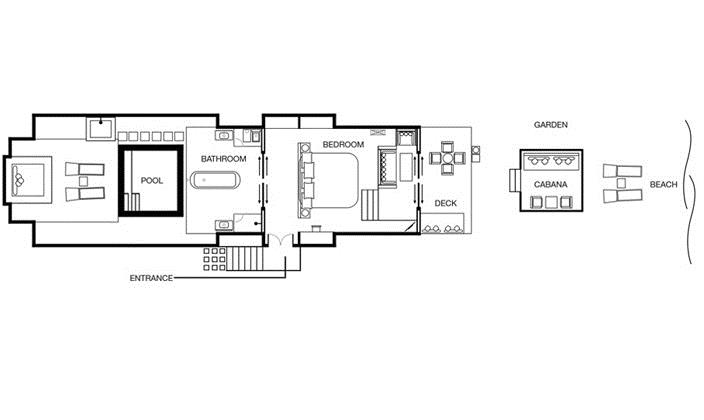 泳池沙灘別墅錯落有致地分布在島嶼郁郁蔥蔥的植被當中,雅致而不事張揚。開放式的內部設計讓沁人心脾的海風暢通無阻,開放式浴室、瀑布水池和配有舒適躺椅的陽臺同樣向大自然敞開胸懷。一間私人涼臺房直通海灘,是在日光下飽覽美景的完美場所。