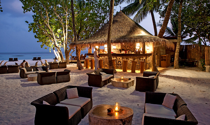 美食特色:雞尾酒和飲料等。酒吧介紹:這個酒沙灘吧位于泳池后的沙灘上,在一個沉重的本土樹木下,特色民族裝飾。每當馬爾代夫完全日出之后,沙灘酒吧就是享受新鮮水果最好的地方,或者也可以從菜單上選擇一份冰茶。點心菜單可以在午餐和下午選用。這也是一個最浪漫的地方。