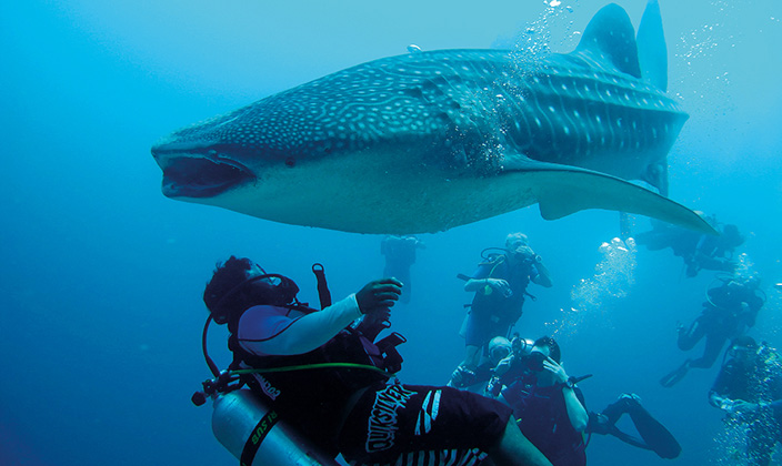 被公認為是世界上最好最大的潛水點之一,浮潛裝備免費租借,擁有多達50多個潛水點,處在最佳觀賞鯨鯊的環(huán)礁,一年中有10個月能看到鯨鯊!