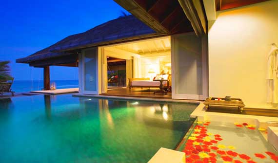 盡享您自己的純樸白色沙灘,陶醉在300平方米的豪華空間之中。泳池海景房和泳池海灘小屋的設施相同,您只需決定自己喜歡哪種景色和環境。泳池海灘小屋面向寧靜的海灘和瀉湖,環抱在郁郁蔥蔥的熱帶植被之中,極其私密。海灘只有幾步之遙,即可領略夢中的印度洋美景。每棟的風格和諧溫馨,配有典雅的硬木家具,色調明快,氣氛現代。裝修豪華的戶外浴亭配有雙人水磨石浴池、瀑布淋浴和私人蒸汽房,由九重葛和雞蛋花遮蔭,直達35平方米的私人無邊泳池。現代化的舒適便捷隨手可得。