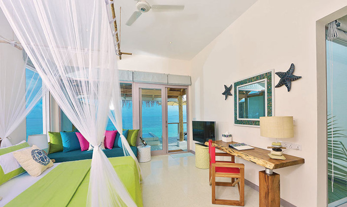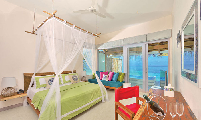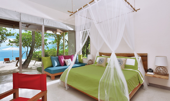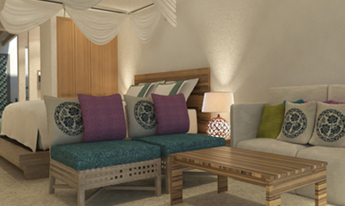 酒店共有116棟別墅,別墅活力和華美的室內(nèi)裝修與熱帶馬代設(shè)計(jì)完美融合,同時(shí)與島嶼郁郁蔥蔥的自然美景相得益彰。
