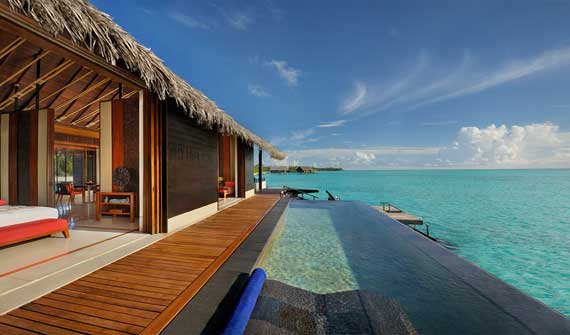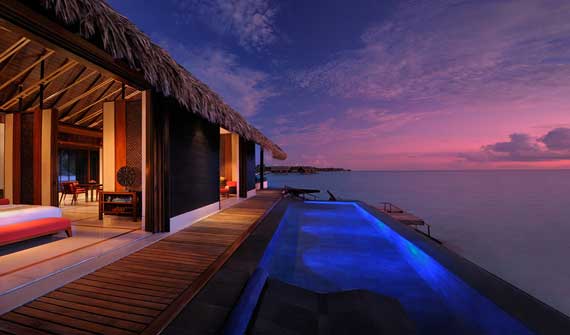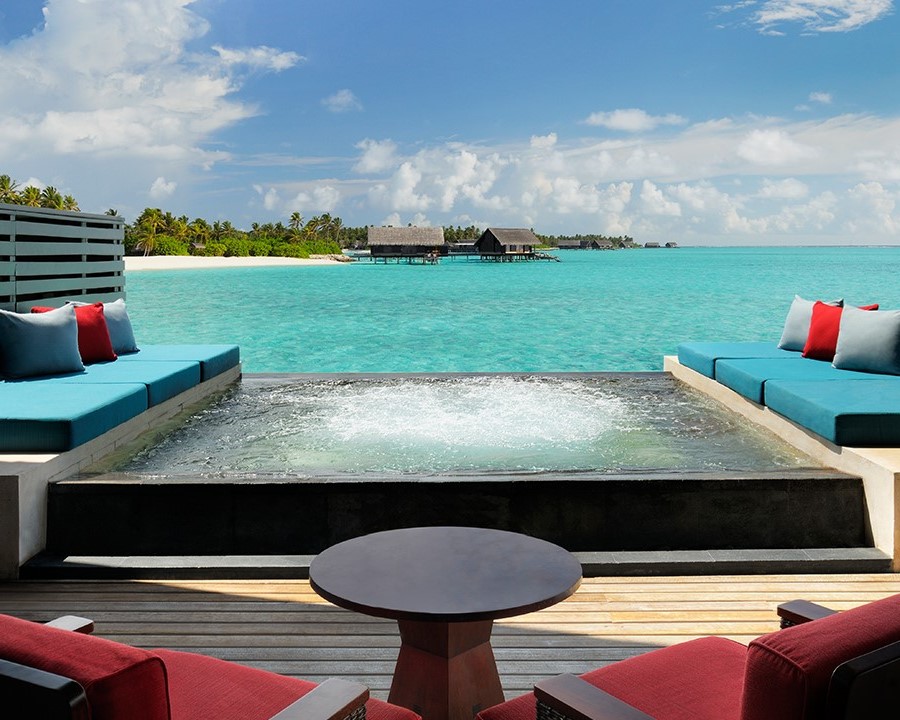這些華麗的別墅通過支柱支撐在印度洋上,繞別墅而建的甲板面積達 33 平方米/355 平方英尺,非常適合戶外休閑與餐飲。別墅設計精美,傳承了馬爾代夫的精髓。每間別墅均配有 20 平方米/215 平方英尺的私人無邊際泳池、帶日光浴躺椅的平臺,以及獨立的按摩池。