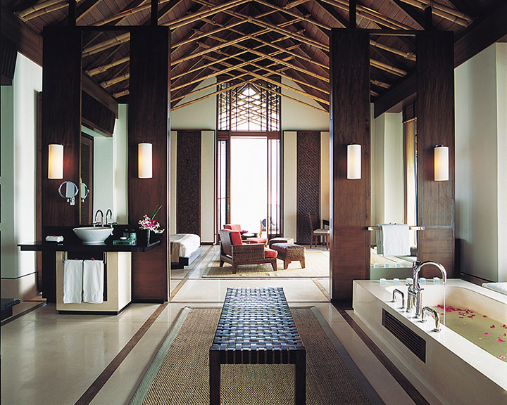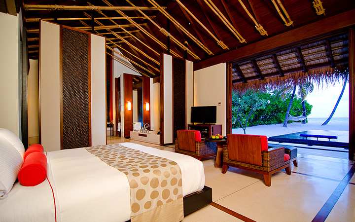 海灘別墅設有延伸至海邊的戶外用餐區和熱帶樹木遮蔭的沙發床,還有 23 平方米/248 平方英尺的私人泳池,為其平添迷人氣息。除提供靈活的外部生活空間外,帶泳池海灘別墅還設有一張特大床或兩張大床、超大浴缸以及室內和室外淋浴。
