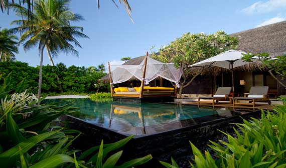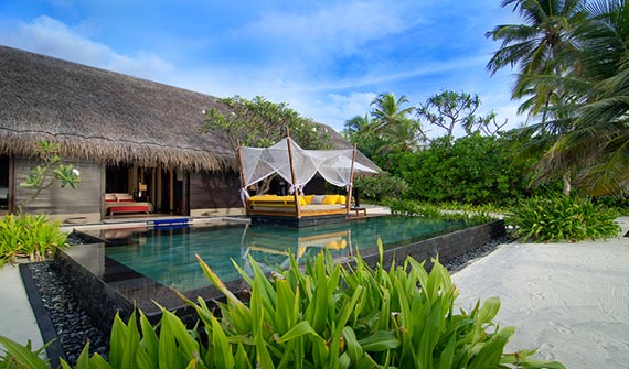些私人別墅是島上最寬敞的別墅,提供兩間臥室、獨立的餐廳和客廳,以及帶豪華雙人浴缸的寬大浴室。遮陽走廊是理想的戶外用餐場所,另外還有寬敞的室外休息區、50 平方米/538 平方英尺的私人泳池和帶遮蓬的沙發床任您暢享。
