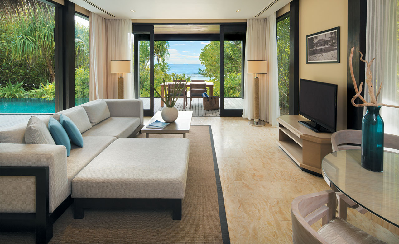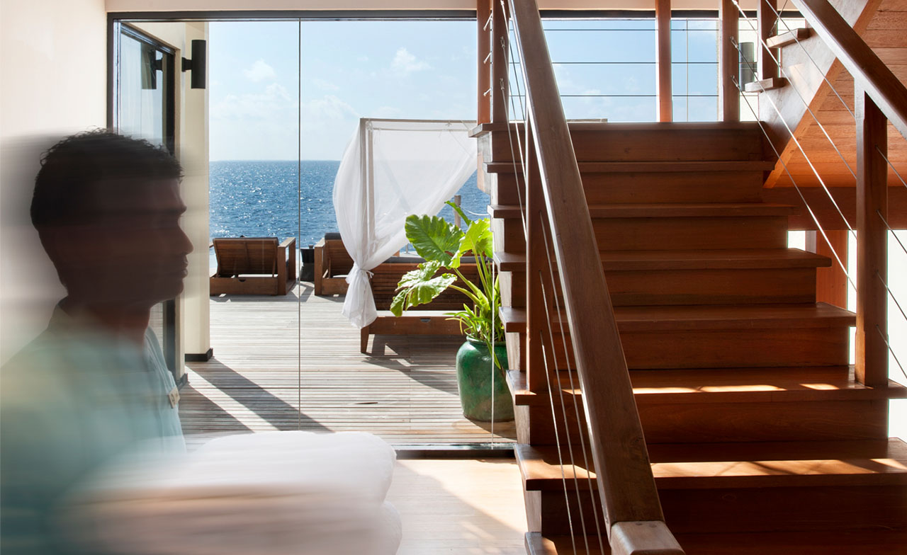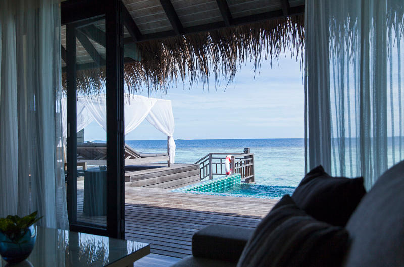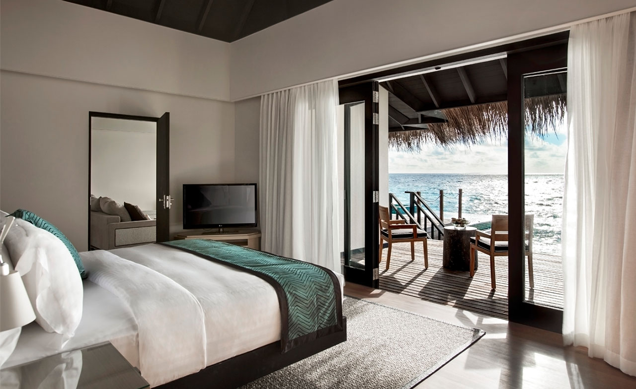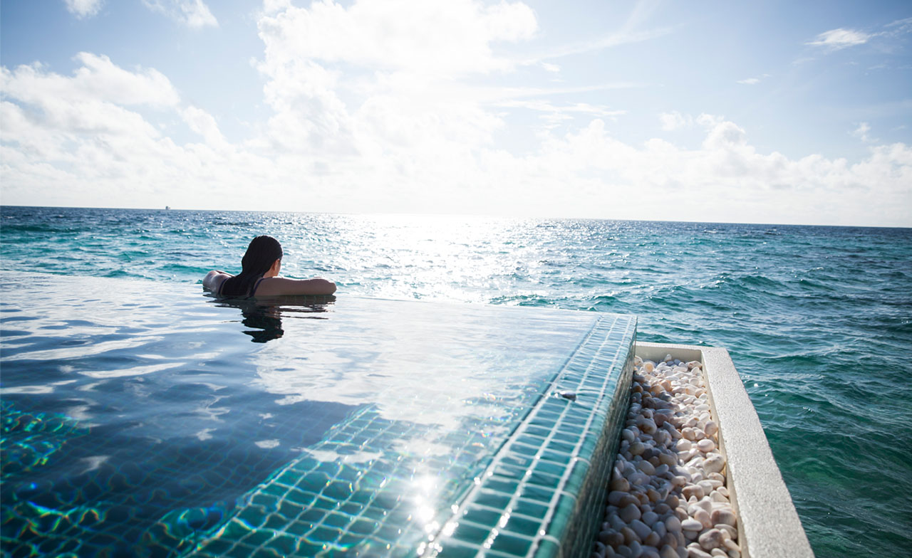 從海洋泳池別墅可以直接進入瀉湖原始水域,在5.2米的無邊泳池、戶外甲板或遮陰的日光躺椅你可以欣賞到驚人的印度洋景觀,落地窗休息讓你不會錯過陽光下的任何一刻的風景。客人可以從臥室或寬敞的躺椅休息區進入戶外甲板。