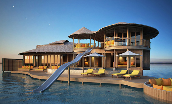 房間面積相當(dāng)大,帶私人泳池,島上的沙灘一級棒,該島另一大特色就是水上別墅的水滑梯是其一大特殊體驗,別墅臥室設(shè)計...