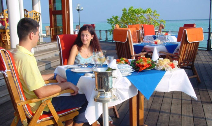 美食特色:馬爾代夫和國際美食。餐廳介紹:Maaniyaa Restaurant是島上的主餐廳,這間寬敞的露天餐廳供應早餐,午餐和晚餐,每天,每個不同的組合提供了本地和國際美食,在Maaniyaa餐廳,每頓飯都是一個美食烹飪樂趣。