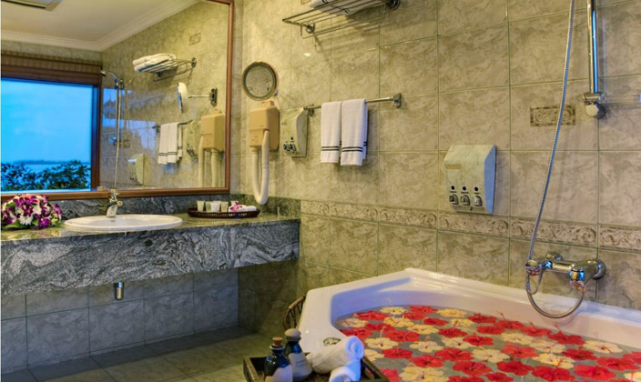 高級沙灘別墅浴室的浴缸和淋浴設施極大地提升了隱私性,為您和您的家人締造了一個完美的假期。您還可以觀看衛星電視,使用互聯網接入,從私人陽臺沿著樓梯可以直接進入海洋的懷抱。