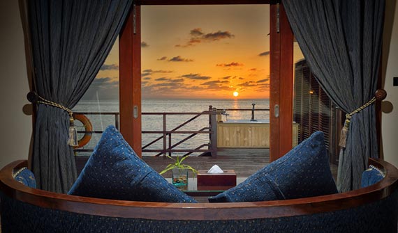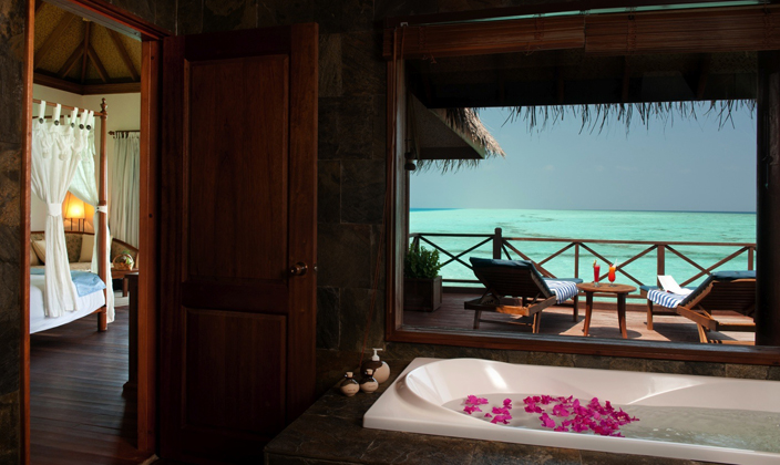 在甲板上的私人按摩浴缸和躺椅上,可以俯視美麗的海灘和礁湖,您可以從私人的木梯直接進(jìn)入瀉湖,享受這難得的陽(yáng)光及海水。