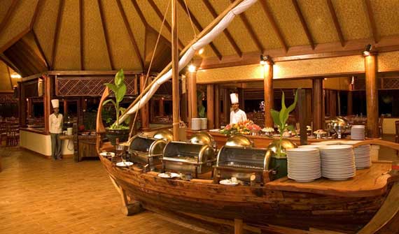 在Dhoni Boat自助,豐富且具有異國(guó)情調(diào)的西方美食,品嘗令人垂涎的美食,欣賞周邊的風(fēng)景!令人難于忘懷。如果您不想要自助,可以選擇小吃或者來(lái)自點(diǎn)菜餐館的佳肴,全天開(kāi)放。島上優(yōu)雅的服務(wù)設(shè)計(jì)令每一位客人感到滿意。