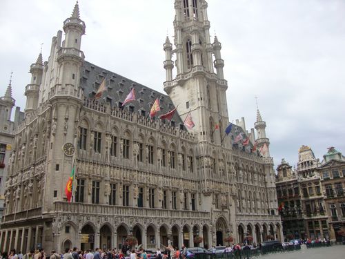 布魯塞爾市政廳是一座典型的古代弗蘭德哥特式建筑,造型宏偉,空靈高聳,引人注目。市政廳大樓始建于1402年,它上面的廳塔高約91米,塔頂塑有一尊高5米的