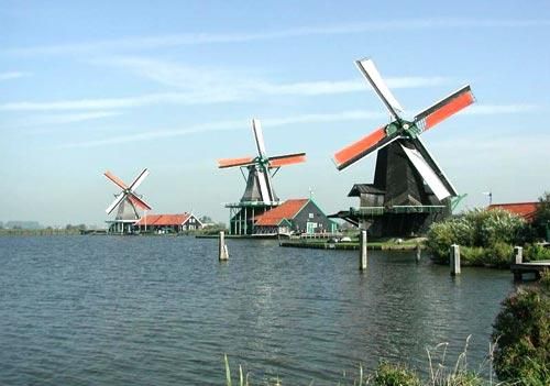 阿姆斯特丹城以北10公里的桑斯安斯風車村是一座秀美的古老村莊。風車和各式手工藝品作坊構成了一幅寧靜而美麗的鄉村風景。村子依然保存了17、18世紀桑斯地區的原貌。