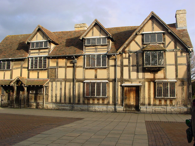 倫敦以西180公里的斯特拉特福鎮,是偉大的戲劇家莎士比亞的誕生地和逝世的地方。莎士比亞的故居在小鎮的亨利街北側,是一座帶閣樓的二層樓房。本結構的房屋框架、斜坡瓦頂、泥土原色的外墻、凸出墻外的窗戶和門廓使這座 16 世紀的老房在周圍的建筑群中十分顯眼。