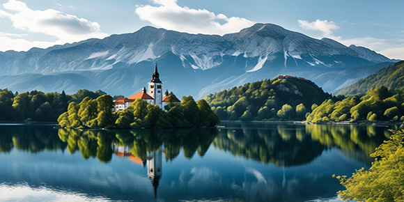 14:00 游覽布萊德(總計約1小時),布萊德湖是斯洛文尼亞知名的湖泊,大約在一萬多年前由阿爾卑斯山脈的冰川地質移動而形成,所以有“冰湖”之稱。這里四周是高山,中間是湖,景色如同仙境一般,湖中的教堂仿佛海市蜃樓,非常美妙:布萊德城堡(約30分鐘)位于湖畔山頂,雄踞于一塊高達100米的峭壁上,視野開闊,可以俯瞰整個湖景。城堡映襯在湖中的倒影和布萊德島相映成趣