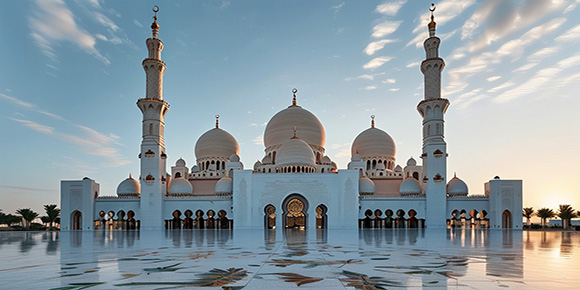 酒店早餐后 ,參觀謝赫扎伊德清真寺 ,是阿聯酋最大的清真寺 ,耗資55億 美元 ,歷時13年 ,是紀念阿聯酋第一任總統謝赫扎伊德而興建的(入內參 觀約45分鐘 ,周末及禱告日和特殊節假日舉行儀式時外觀20分鐘)。