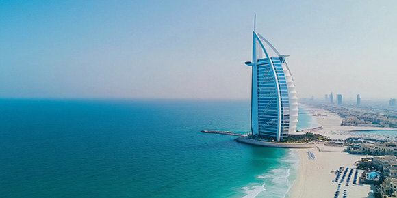 驅車進入最小的酋長國“阿治曼”,在著名的【阿治曼海濱】(停留約30分鐘)由于這里沒有其他的城市設施,所以海灘至今仍保留著原始的海濱風貌;岸灘寬廣平坦,沙質純凈綿軟,環境恬寂幽靜,海天風光無限!美麗的阿之曼海濱一直延伸到沙迦。