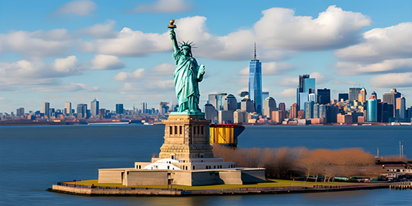 上午乘坐游船繞自由女神像航行(不上島, 45分鐘),遠觀自由女神像,自由女神像的全稱是“自由照耀世界之神”,今天她不僅是美國國家的紀念碑,更成為全世界自由和民主的象征。