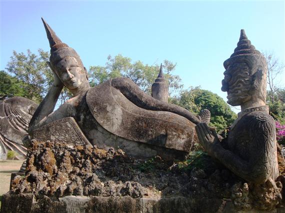 湄公河畔的一片草地上的香昆寺(又叫佛像公園)正如其名稱所示,公園里到處都是佛教和