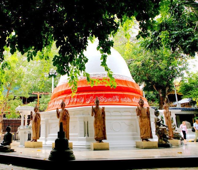 斯里蘭卡著名佛寺,位于科倫坡市南城,為紀念印度孔雀王朝阿育王(又譯阿輸迦王)派其子摩哂陀到斯里蘭卡弘揚佛教而建。寺內金碧輝煌,有各種不同姿態的佛