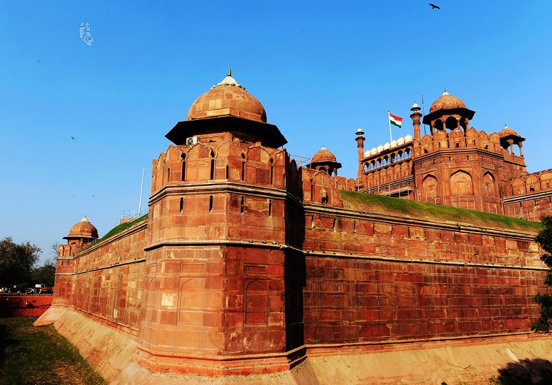 紅堡是一座紅色砂巖筑就的城堡,17世紀(jì)中葉,由莫臥兒王朝第五代君主沙賈漢修建。紅堡長(zhǎng)915米,寬518米,主門名為拉赫爾門。由于幾經(jīng)戰(zhàn)亂,今日的紅堡盡管失去了昔日的華麗,但拉合爾門的雄偉氣勢(shì)還在,巍巍的紅色城墻還有,部分基本結(jié)構(gòu)完好的宮殿似乎還可以窺探出昔日的輝煌氣派。紅堡的拉赫爾門(LahoreGate)正對(duì)著的路就是老德里著名的商業(yè)街舊市街(ChandniChowk)。