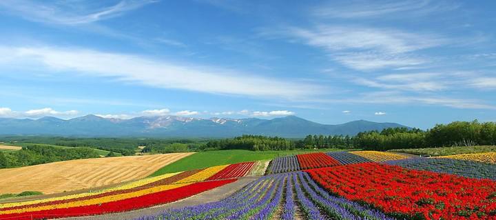 富良野有著絢麗多彩的四季,春天到處盛開的觀音蓮,夏日芬芳迷人的薰衣草,秋季滿山遍野的紅葉,冬季皚皚的雪。美麗的富良野,是日本著名的觀光勝地,每年都吸引著大量的游客來此觀光旅游。富良野最美的就要數薰衣草花田了,每到薰衣草盛開的時候,浪漫的薰衣草花田在雪山和十勝山的映襯下更為壯觀迷人,那紫色的浪漫,那迷人的芬芳,讓你與北海道有一個最浪漫的邂逅。
